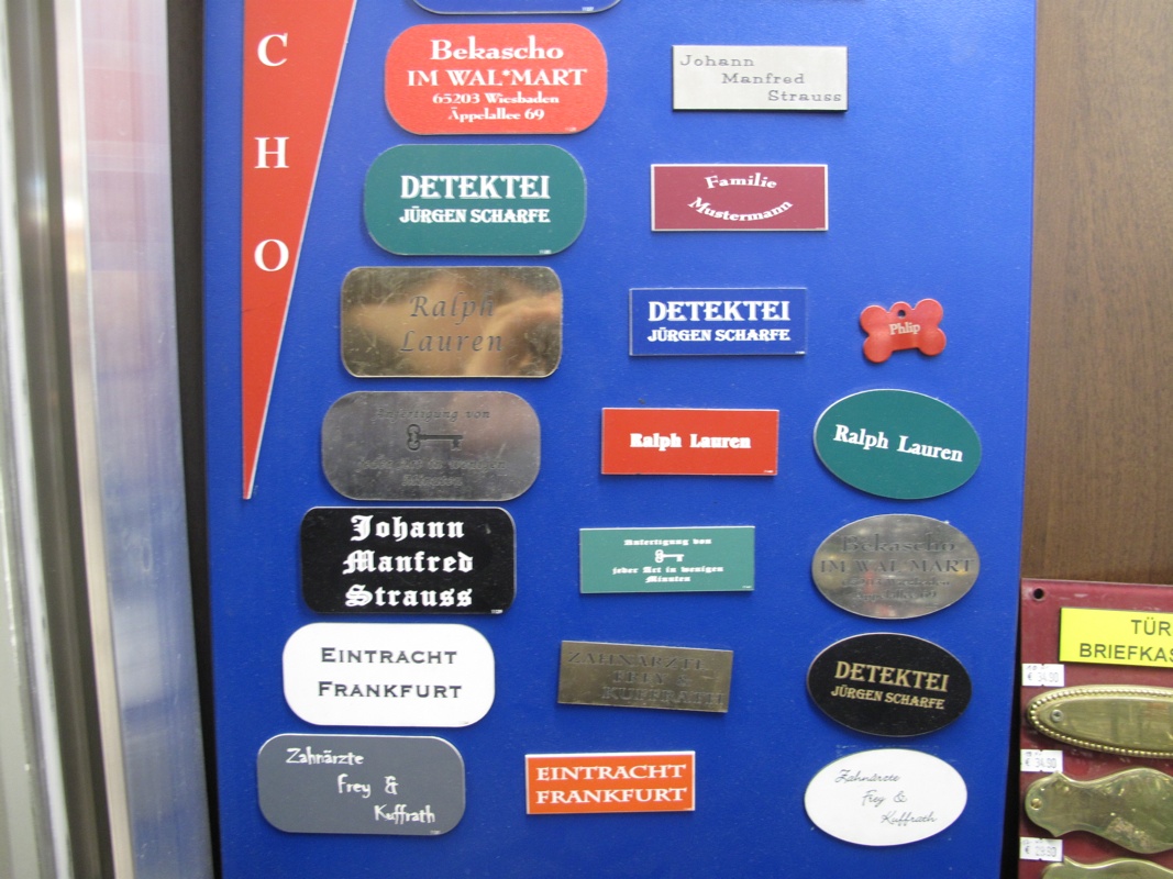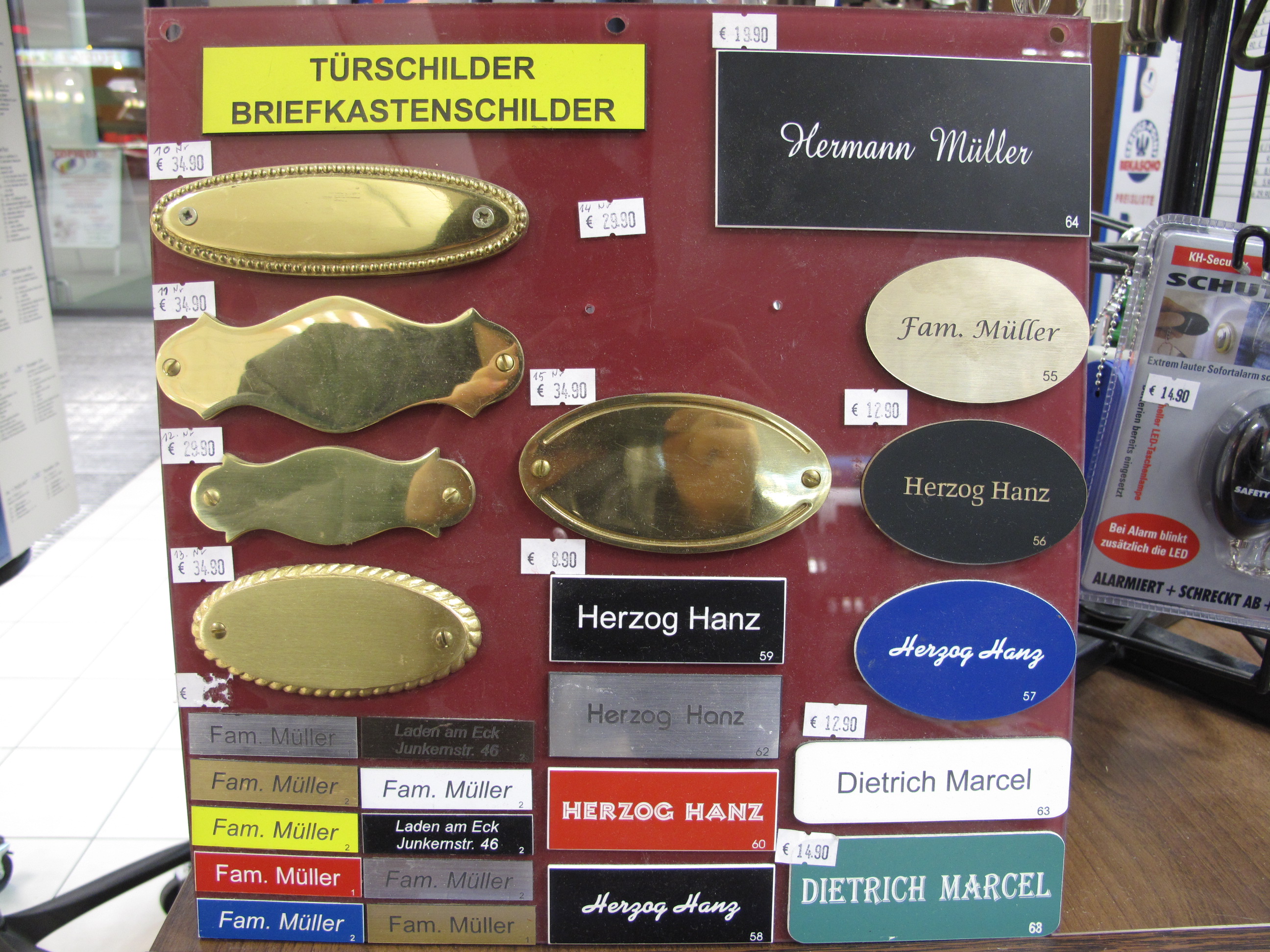 ...Schilder aller Art, ausserdem bedrucken wir Schilder individuell.